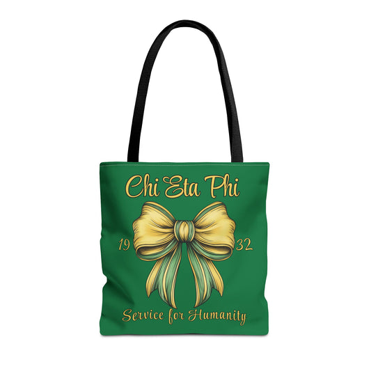 Chi Eta Phi Green with Yellow Bow Design Tote Bag