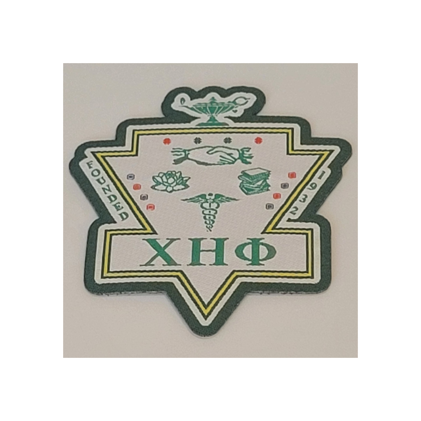 The Chi Eta Phi Custom Woven Patch is beautifully created to be sewn on any garment to show your Chi pride. Unlike the textured feel of embroidered patches, which use thicker thread stitched by an embroidery machine over a cotton twill base, woven patches are created by interlacing thin threads to form flat patches with finer details. This creates a flatter appearance, decreases the thickness of the patch, and adds cleaner lines and a sharper look.
